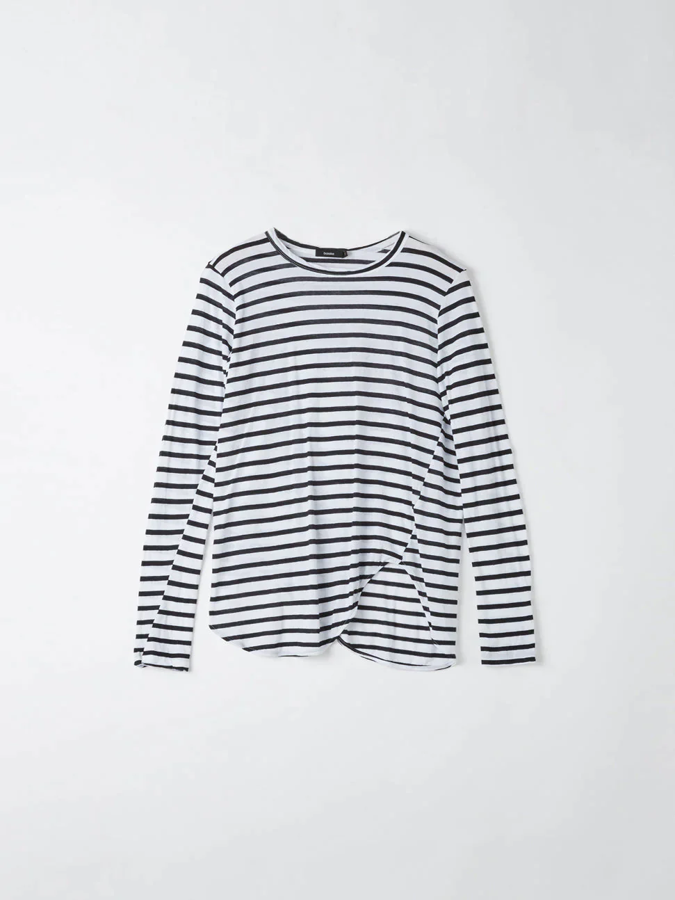 Bassike / Stripe Scoop Hem Long Sleeve T-Shirt / White + Black