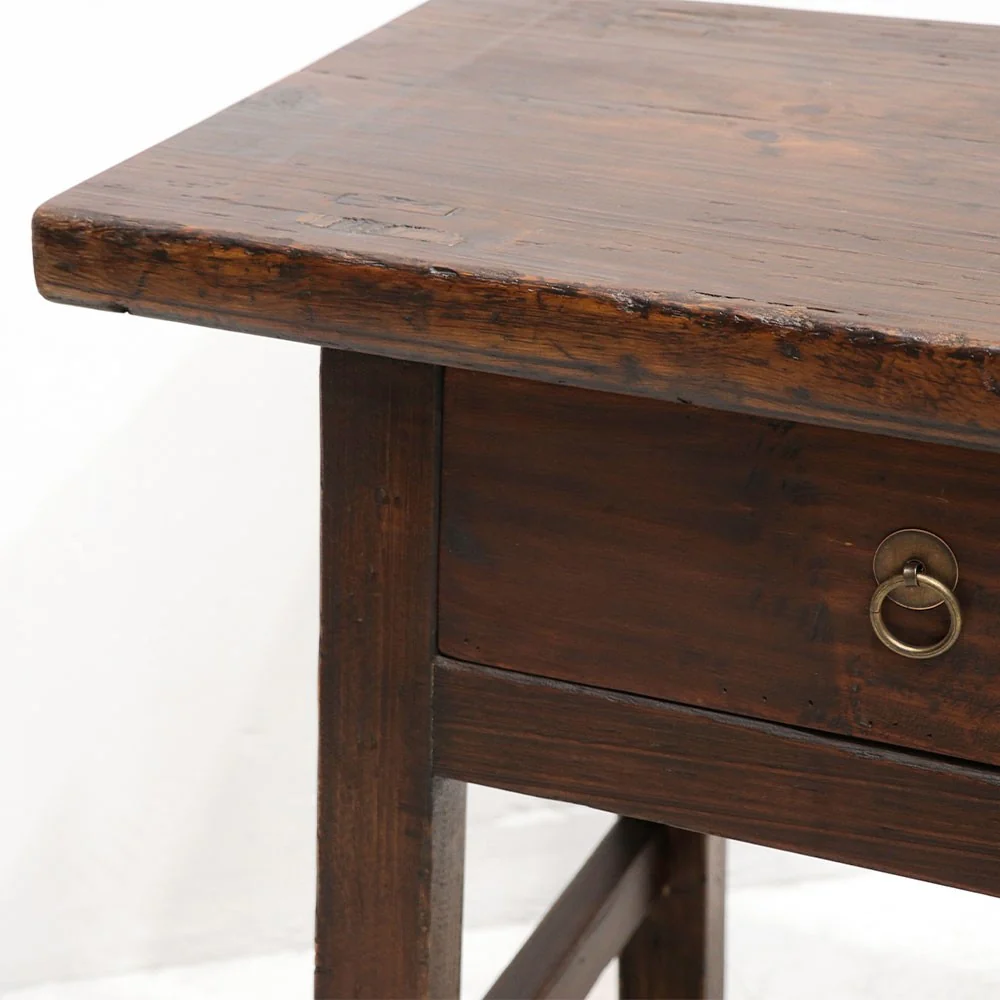 Antique Chinese Butcher's Block Table / 2 Drawer / Dark